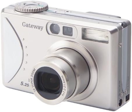Сүрөт: алдыңкы view of the Gateway DC-T50 digital camera with the lens extended, ready for use.