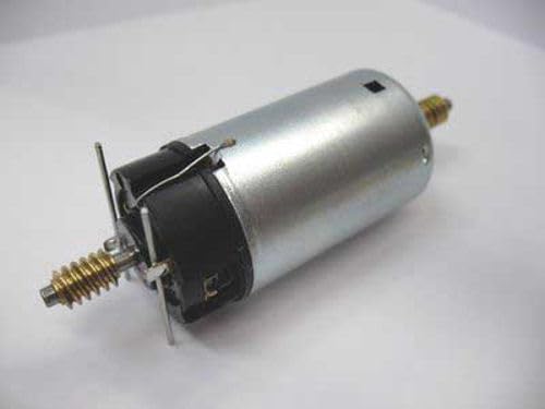 Image: The Piko 36004 G Scale Motor, featuring its metallic cylindrical body, black end cap with electrical terminals, and a brass worm gear on the shaft. This component is crucial for driving G scale model trains.