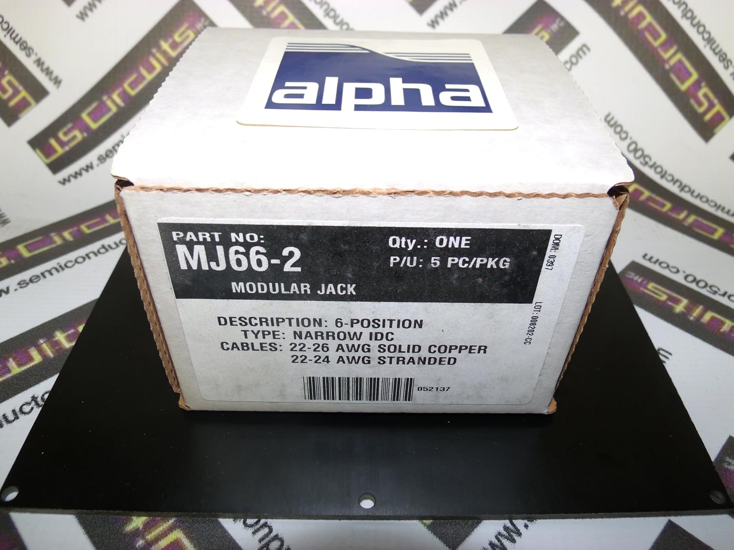 The Alpha MJ66-2 is a 6-position modular jack designed for reliable electrical connections. It features a narrow Insulation Displacement Connector (IDC) type, compatible with specific wire gauges for both solid copper and stranded cables. This product is suitable for various industrial and scientific wiring applications.