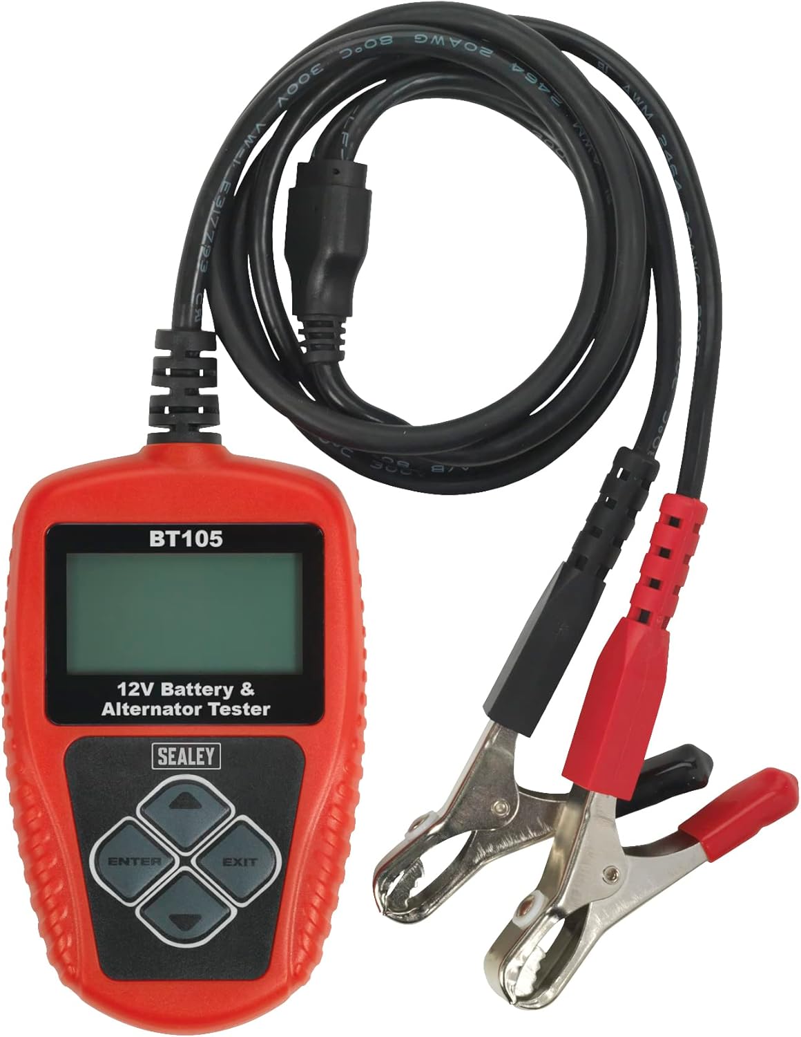 Figure 1: Sealey BT105 Digital Battery & Alternator Tester with attached cables.