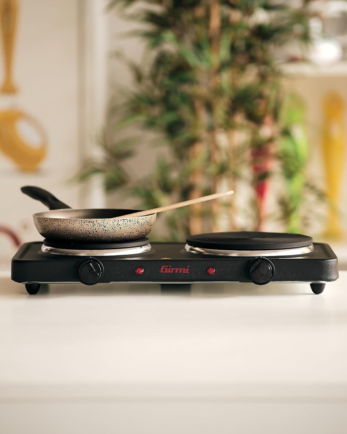 The Girmi PE36 is a powerful and compact double electric hot plate designed for versatile cooking. Featuring two cast iron plates with independent temperature controls, it offers flexibility for various culinary tasks. Its robust construction ensures durability and efficient heat distribution.