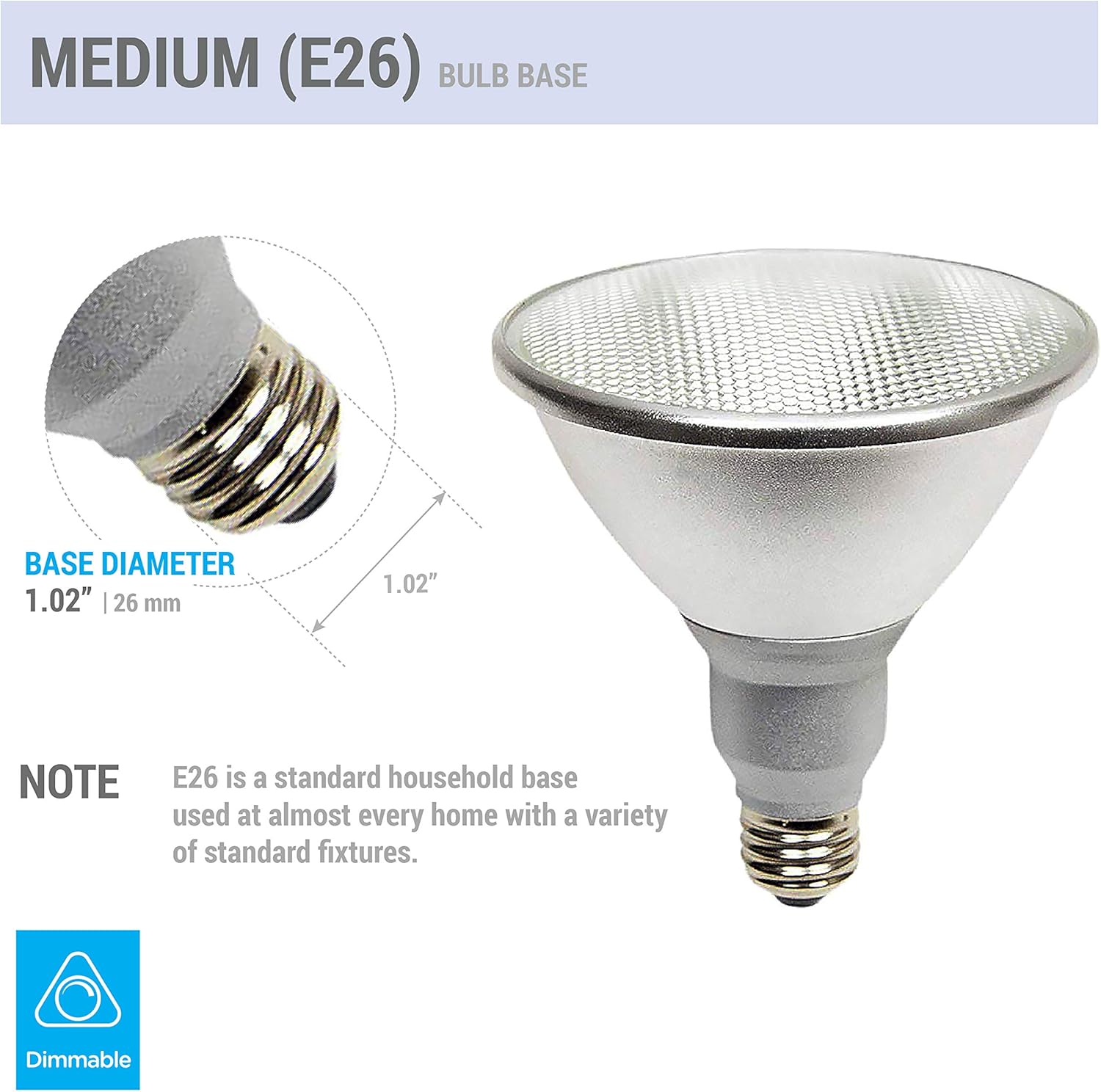 The KOR K21471 LED PAR38/FL bulbs feature a standard E26 medium screw base, making them compatible with most household fixtures.