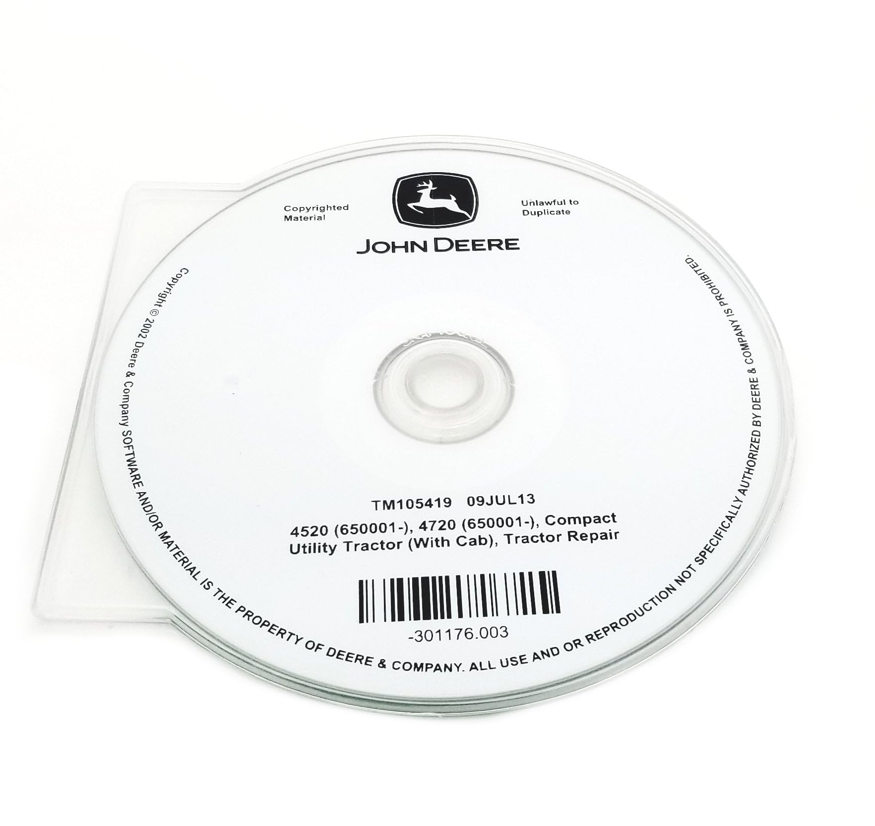 This product is a technical manual CD. For information regarding the content or specific procedures within the manual, please refer to official John Deere support channels or authorized dealerships. As this is an informational product, specific warranty terms for the CD itself may vary. Please consult your purchase documentation for details on returns or replacements for defective media.