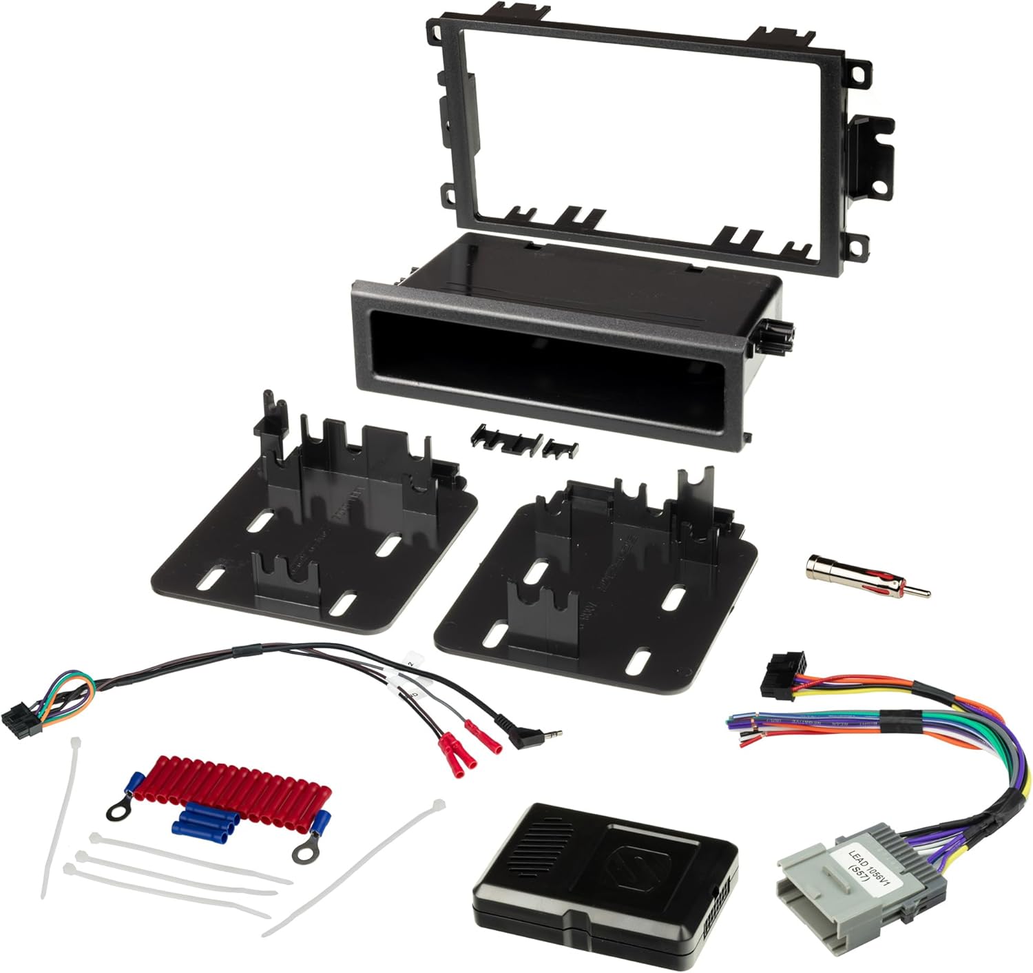 The SCOSCHE GMT0312DDCS is a premium installation solution designed to facilitate the integration of an aftermarket double DIN car stereo into select 1994-2012 General Motors vehicles. This kit ensures a seamless fit and maintains essential vehicle features, providing a factory-installed appearance for your new audio system. It includes a dash kit, radio replacement interface with steering wheel control (SWC) harness, and an antenna adapter.