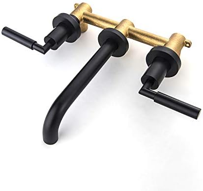 Your RBROHANT Matte Black Wall Mount Bathroom Faucet features dual lever handles for precise control of water temperature and flow.