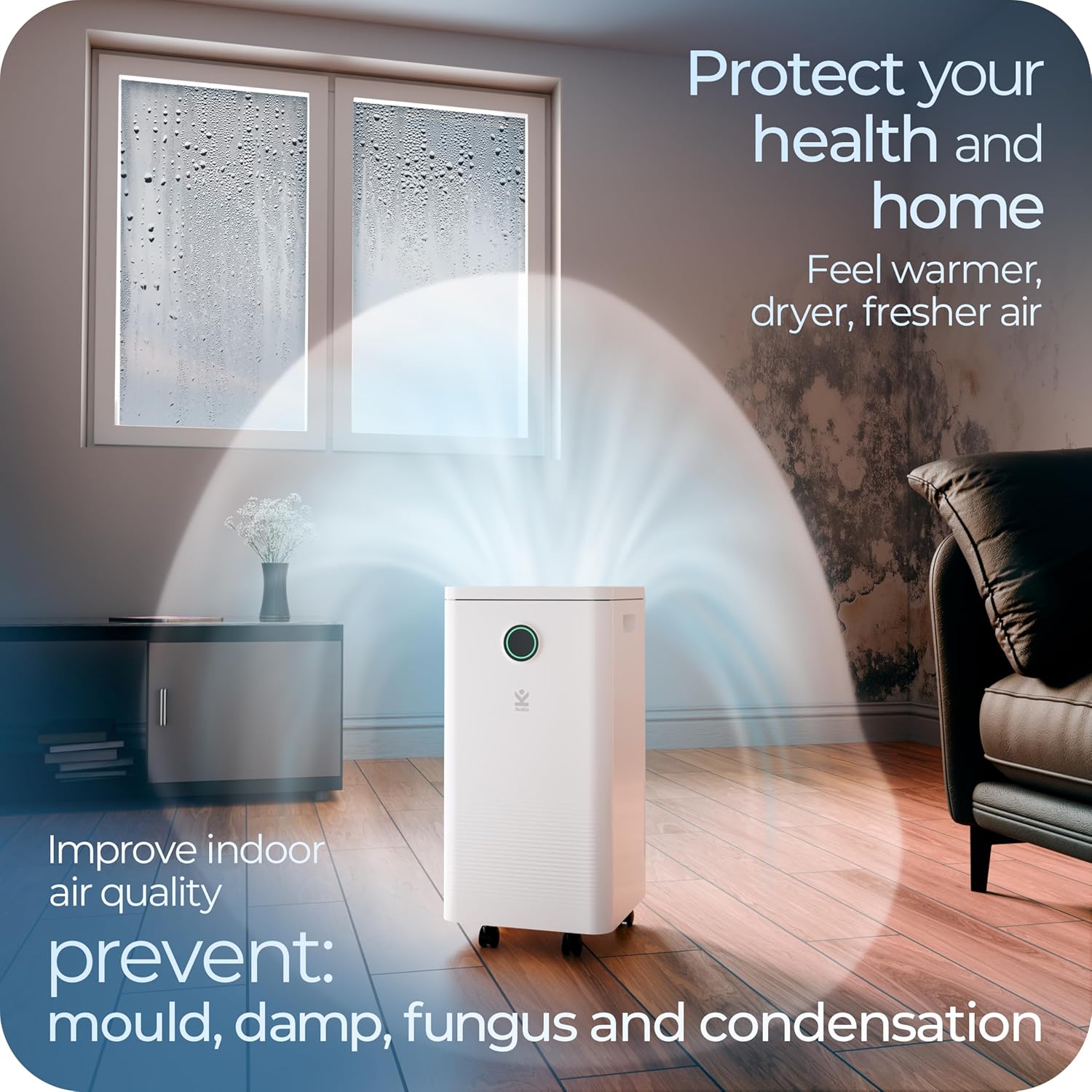 - Efficient Humidity Removal: Removes up to 10 liters of moisture per day, ideal for rooms up to 26 m².