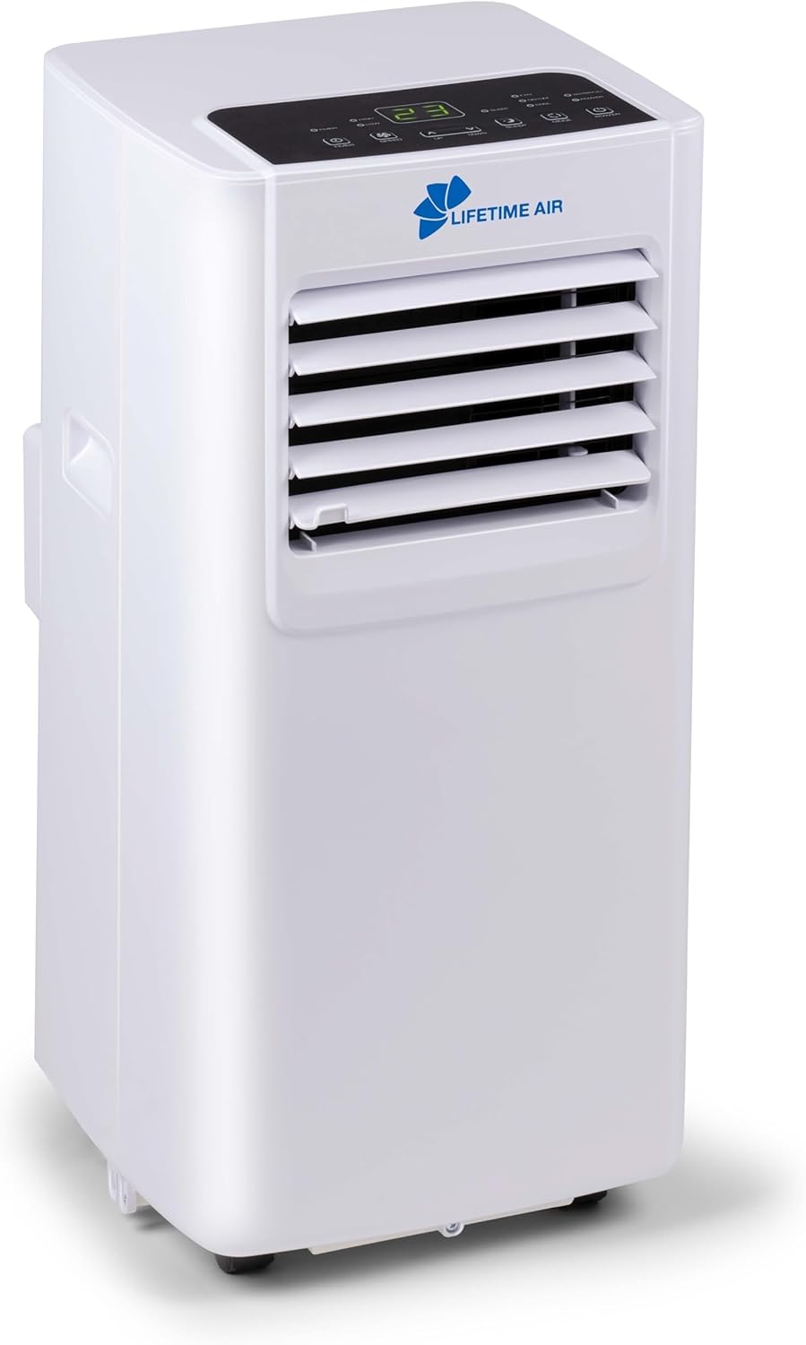 1.2-сүрөт: Бурчтуу алдыңкы бет view of the Lifetime Air Mobile Air Conditioner, highlighting its compact design.