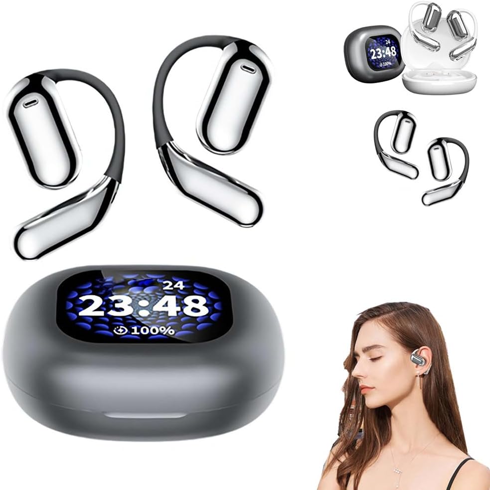 The Q16 Pro Over Ear Open Ear Bluetooth 5.4 Earbuds are designed to provide a comfortable and immersive audio experience. Featuring a full-color LCD touch screen for intuitive control, these true wireless earbuds offer adaptive active noise reduction, an adjustable equalizer, and Bluetooth 5.4 connectivity for stable and high-quality sound transmission. The open-ear design ensures comfort during extended wear while allowing awareness of your surroundings.