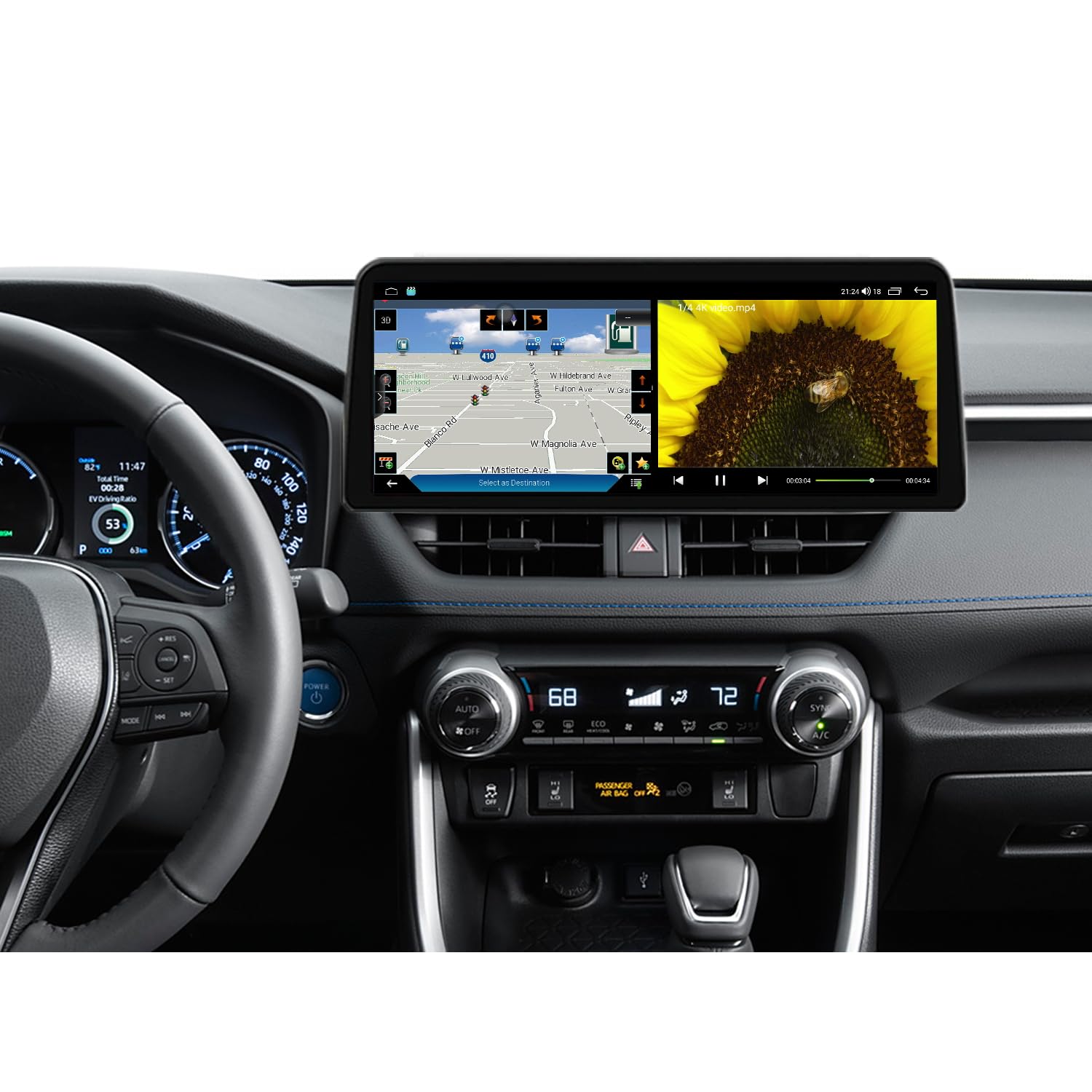 Image: The 12.3-inch Android Car Stereo seamlessly integrated into the dashboard of a Toyota RAV4, showcasing анын чоң дисплейи жана колдонуучу интерфейси.